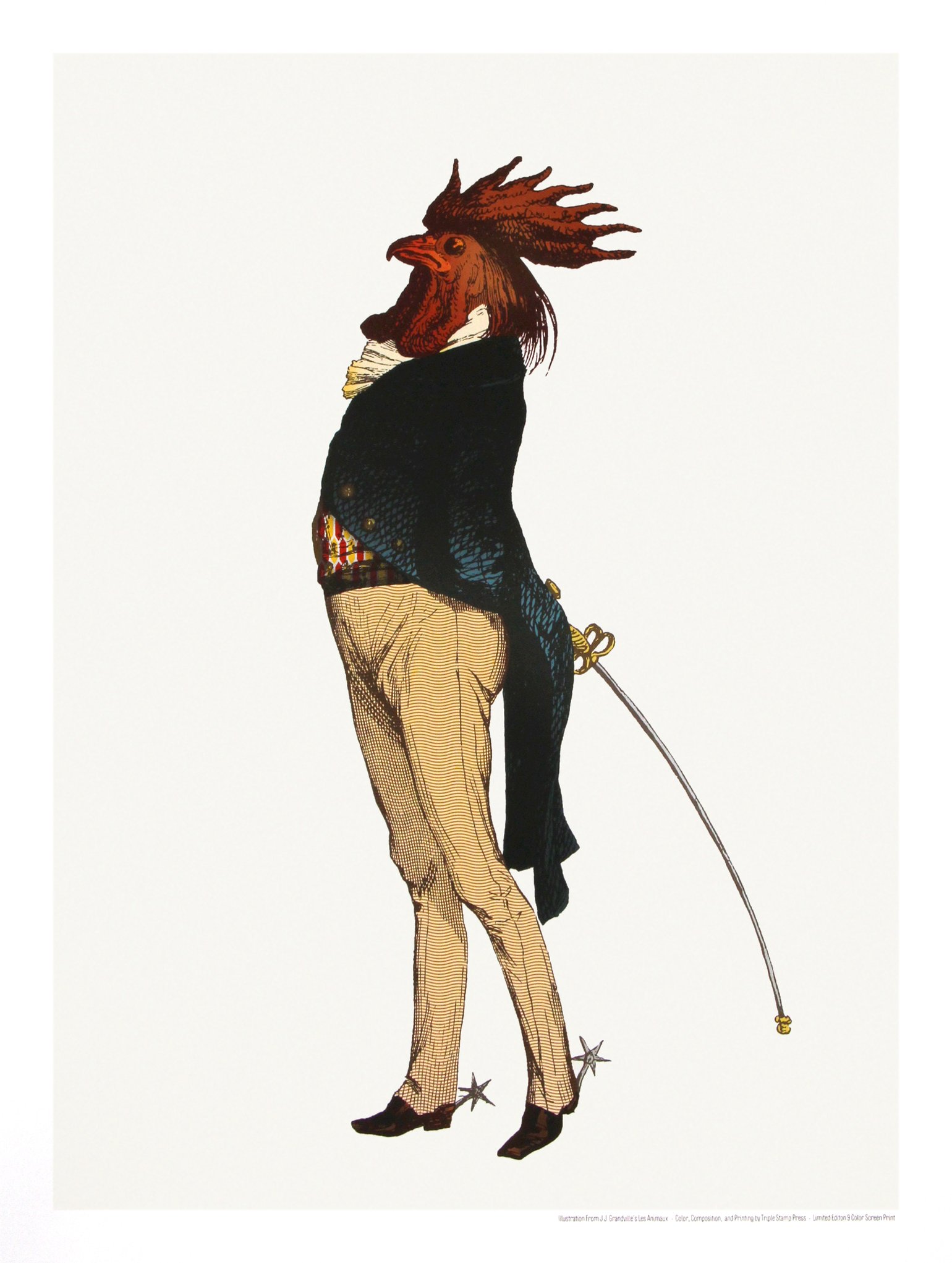 The Grandville Series celebrates the art of nineteenth-century illustrator J.J. Grandville in an exercise of complex screen printing. Each limited-edition serigraph isolates elements from Grandville’s single-color drawings, removing them from their nineteenth-century context to display them in a new world of color.